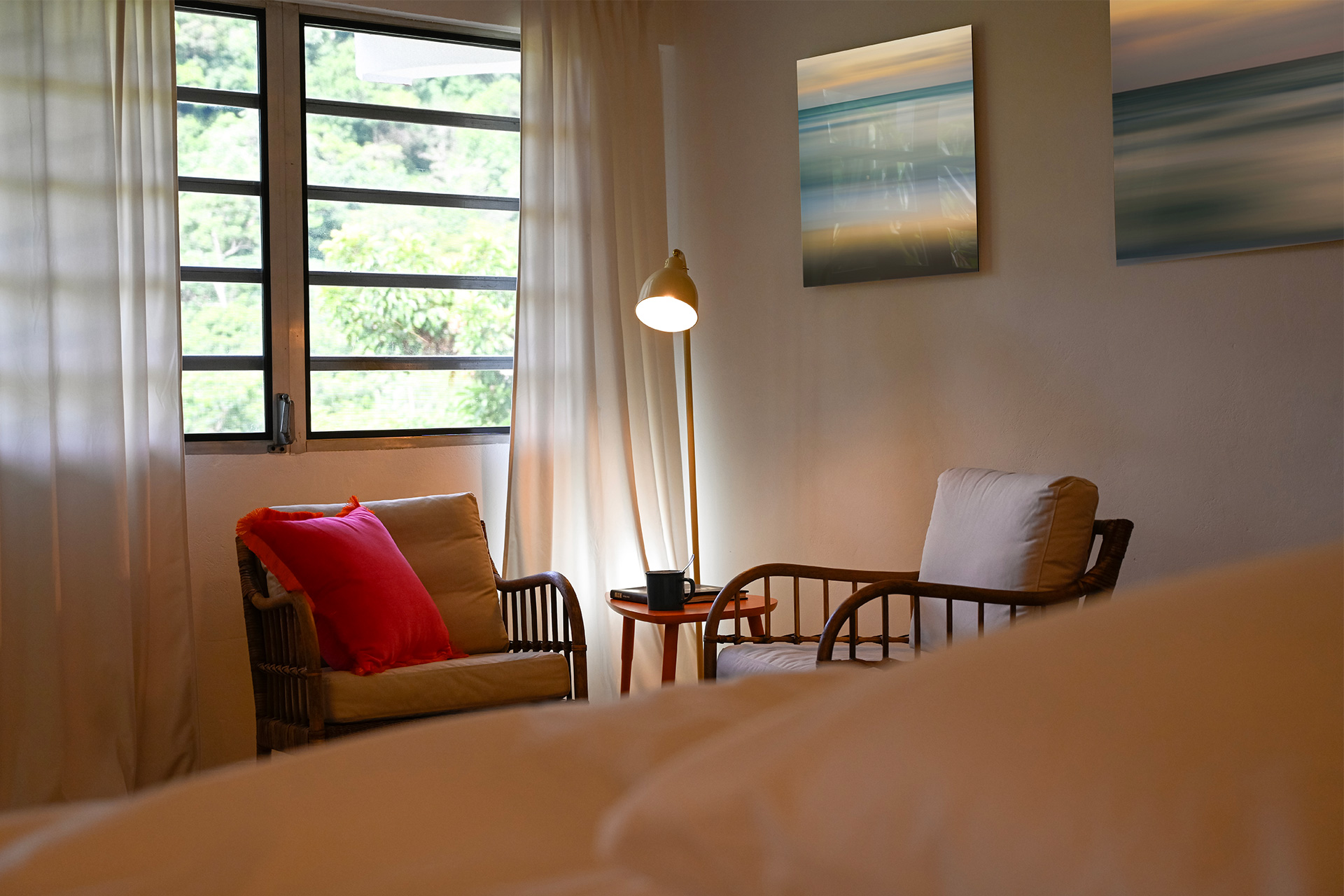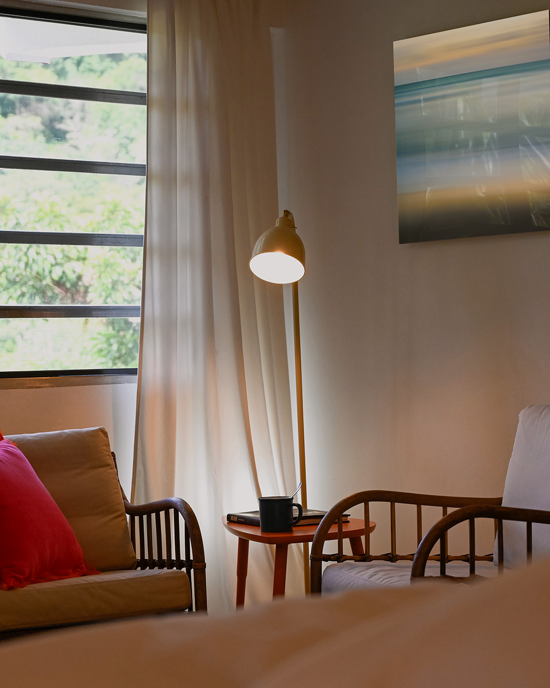 Start your morning in the quiet comfort of the master bedroom’s reading corner, framed by mountain views, fresh air, and a delightful Puerto Rican cup of coffee.